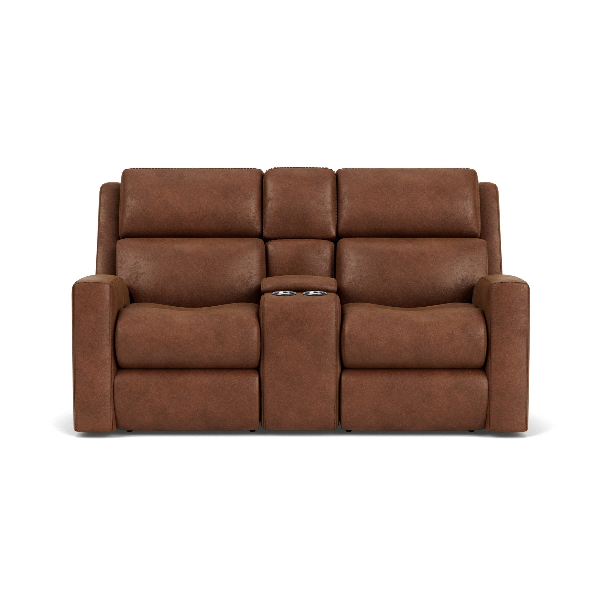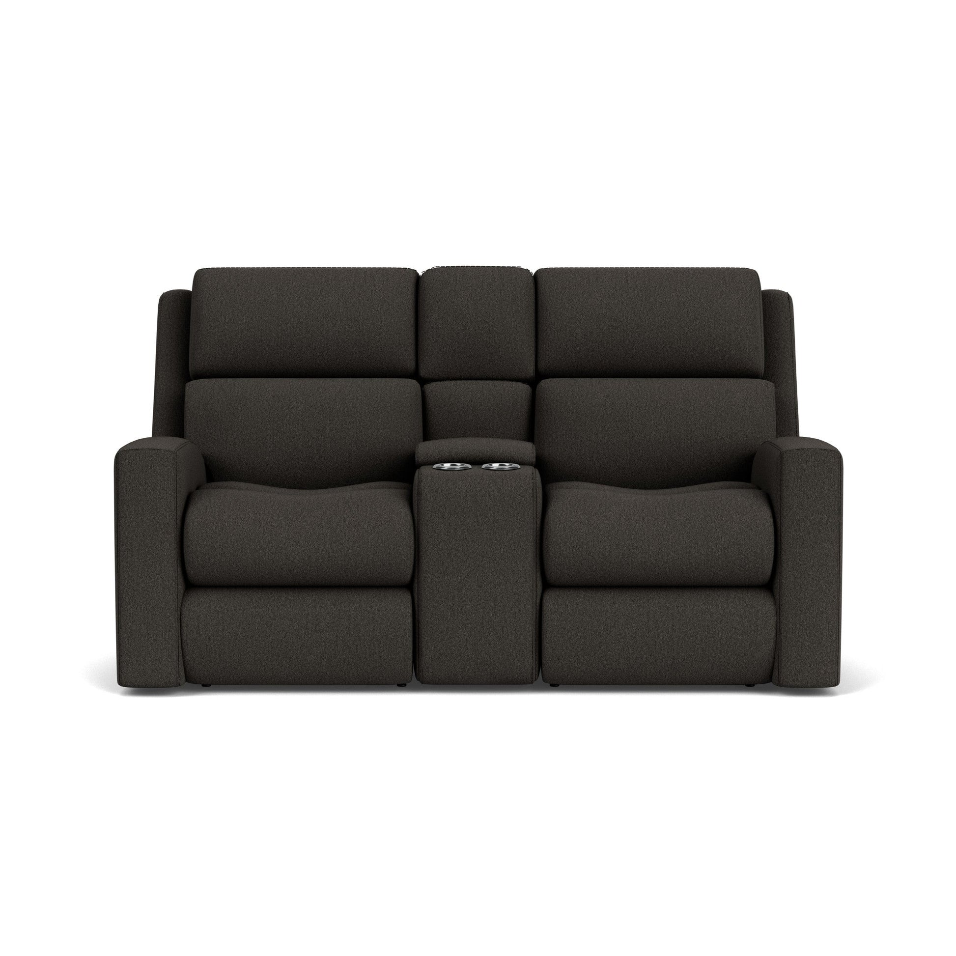 Levity you deserve Relax into weightlessness with the Score Power Reclining Loveseat with Console and Power Headrests & Lumbar. The zero-gravity feature balances weight evenly, to provide the perfect levity while reclined. While the power headrest and lumbar adjust independently, for personalized comfort for the whole family. The center console offers cup holders as well as storage for remotes and more. USB ports, with zero-draw technology, give you peace of mind while charging devices. Built with our patented DualFlex Spring System™ Score ensures flexibility and support for years to come. Choose from hundreds of fabric options to match any taste or decor. Center storage console features two cup holders and space to house remotes, magazines and other items Power control independently adjusts the headrest, recline, and lumbar support for a personalized sit A USB port is built into the power control for convenient charging Home button returns the headrest, footrest, and lumbar support to their original positions with one touch Built to last with our DualFlex Spring System™—sturdy steel ribbons attached to flexible coils that offer a wide range of motion and durability Padded track arms add contemporary flair and reliable comfort to your space Contoured seat provides hours of supportive comfort Divided back cushions have a clean look and cradles the head, neck, and shoulders Attached back and seat cushions stay in place, extending their lifespan and maintaining a tidy appearance Cushions consist of a high-density foam core that ensures comfort as you sit and recline Removable backs allow for easy lifting and maneuvering through doorways Available in a wide variety of select fabrics, including performance options, to suit your personal décor, style and family Model Number: 2805-601L Dimensions 43H x 74W x 42L