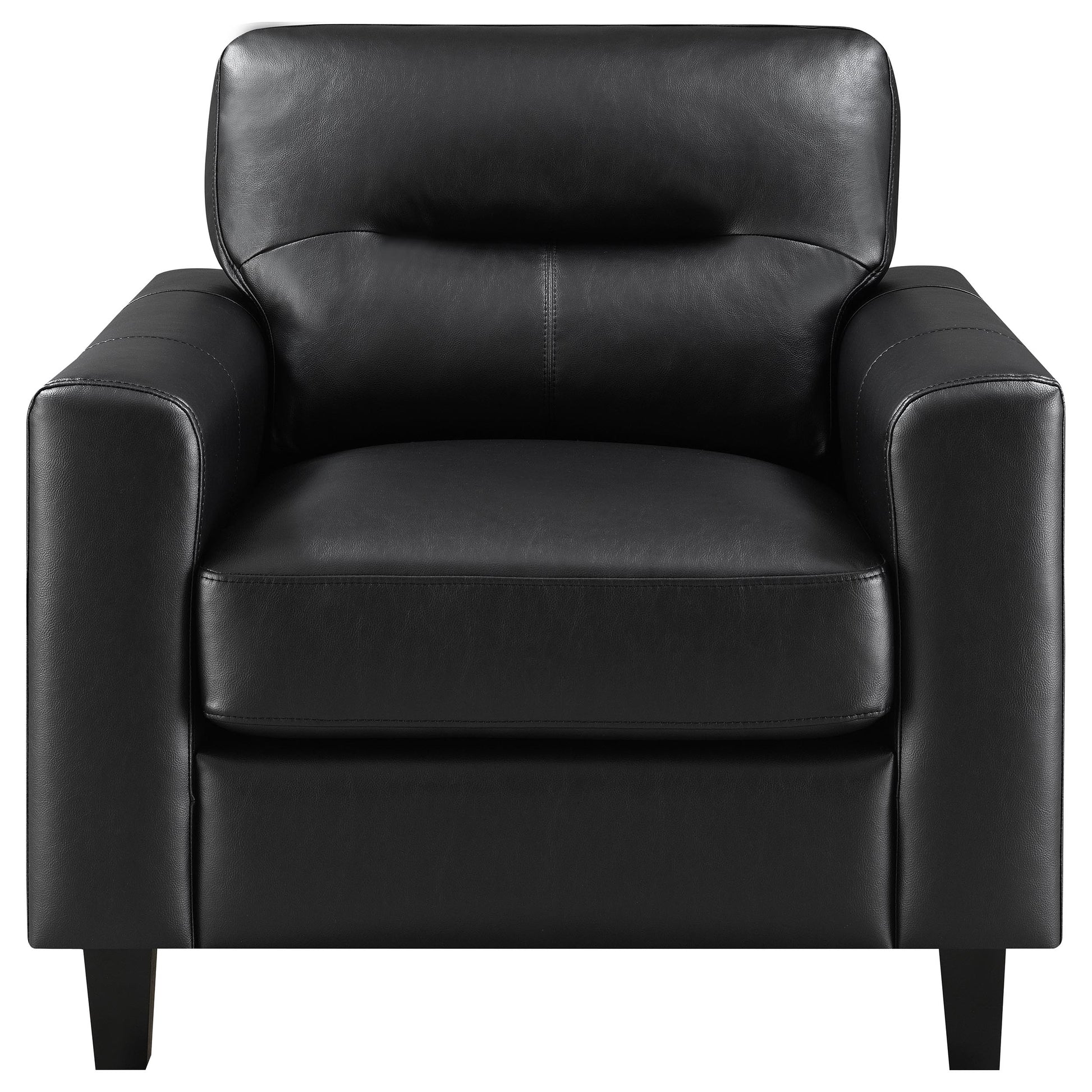 • Black leatherette upholstery defines each piece with soft matte uniformity