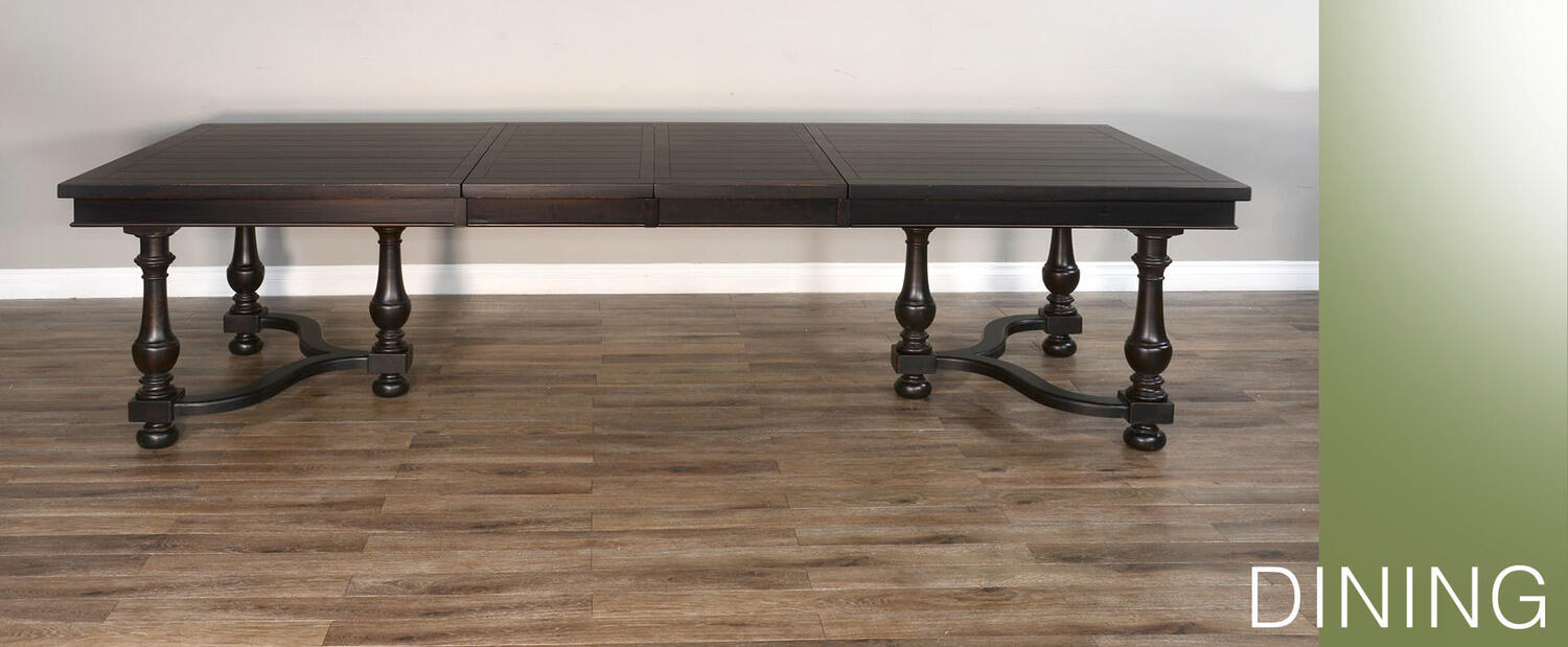| Featured-4 | Table has 6 solid wood turned legs with decorative stretchers | |