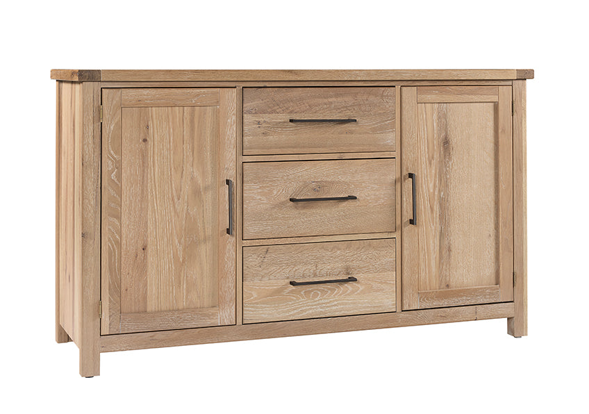62 inch server crafted from solid American Oak. 3 drawers with server tray and 2 doors with fixed shelf