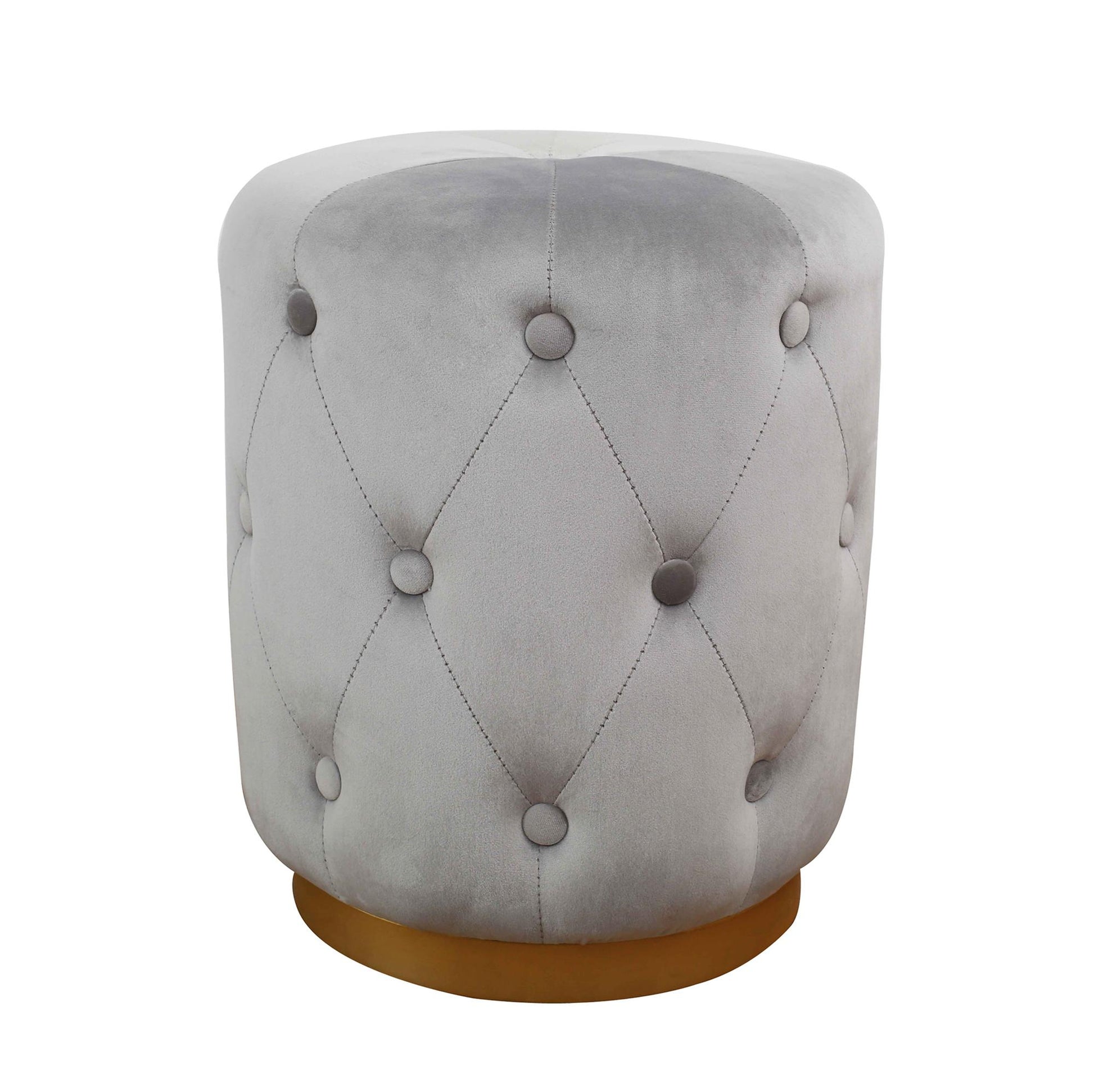 Muted hues and luxurious velvets define the Skylar ottoman. Adorned with button tufting and a recessed gold base it gives tribute to Hollywood glam style. Perfectly plush as a foot stool or extra seat, this ottoman is sure to please. Available in multiple color options.
