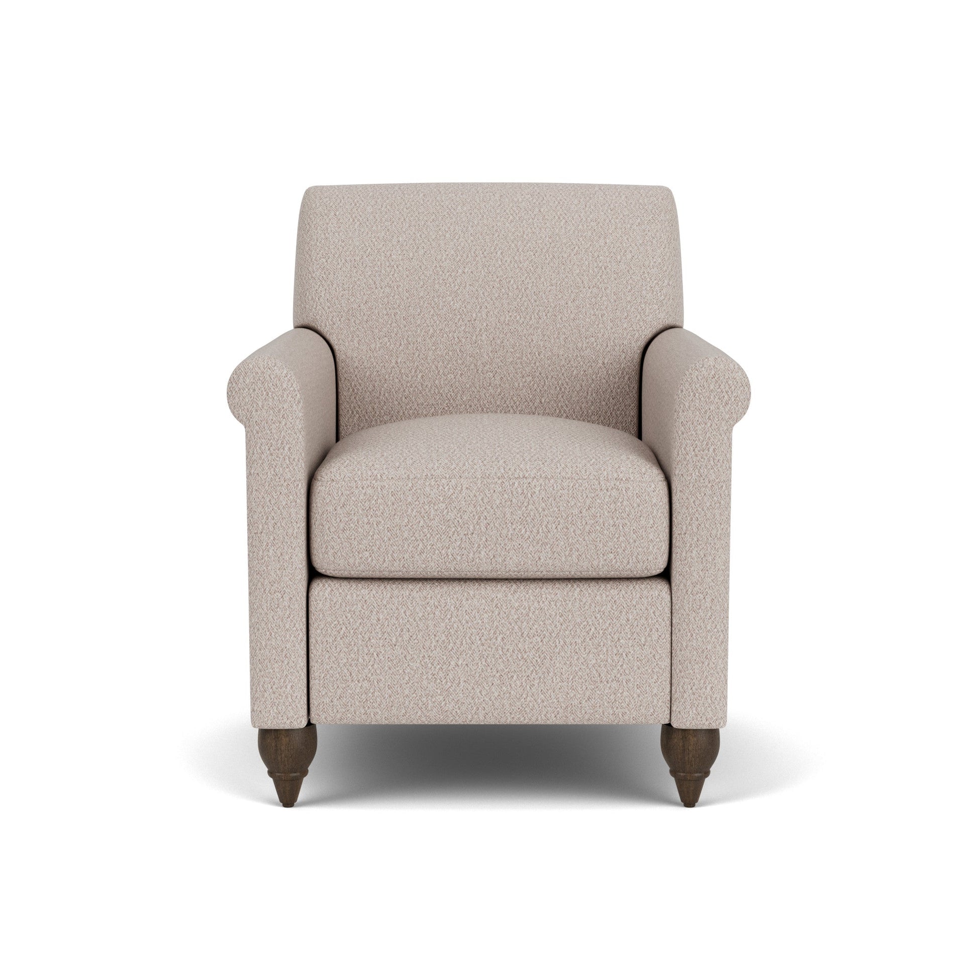 Whimsical elegance The perfect elegant piece to accentuate your home, the picturesque petite roll arms of the Stella chair invite you in. Take a seat atop a removable and reversible cushion that is supported by our patented Blue Steel Spring system – backed by our lifetime guarantee. Handcrafted with a durable frame and upholstered with careful detail, Stella is designed to last. The tight back and turned wood legs give this quaint chair a modern flair. Elevate your home with the chic style of Stella. Perfectly pairs with other Stella pieces, or can stand alone as an accent chair Constructed with a durable multi-layer wood frame The patented Blue Steel Spring C-Flex system provides unmatched seat support and comfort Lightly padded petite roll arms provide an elegant touch Reversible seat cushion allows you to flip and rotate it for even wear and comes in your choice of Luxury or Plush style Elegant turned legs in your choice of finish Upholstered in your choice of fabric, including those with performance and sustainability characteristics Handcrafted in North America Model Number: 5891-10 Dimensions 36H x 33W x 35L