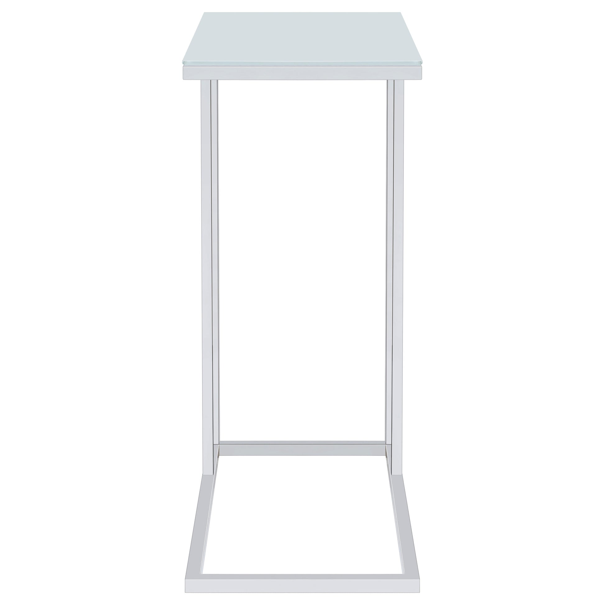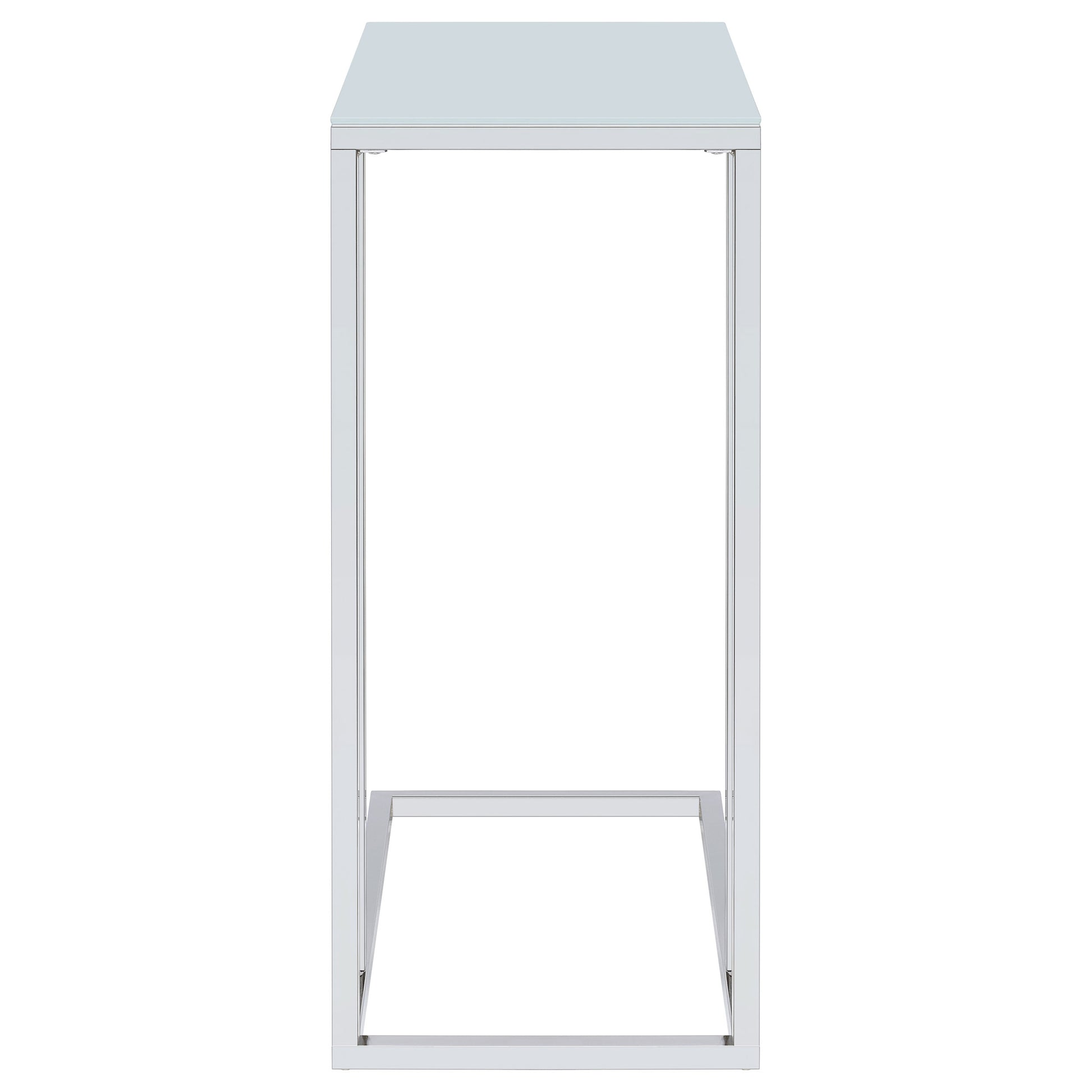 Stella White Glass Top C-Shaped Sofa Side Table Chrome