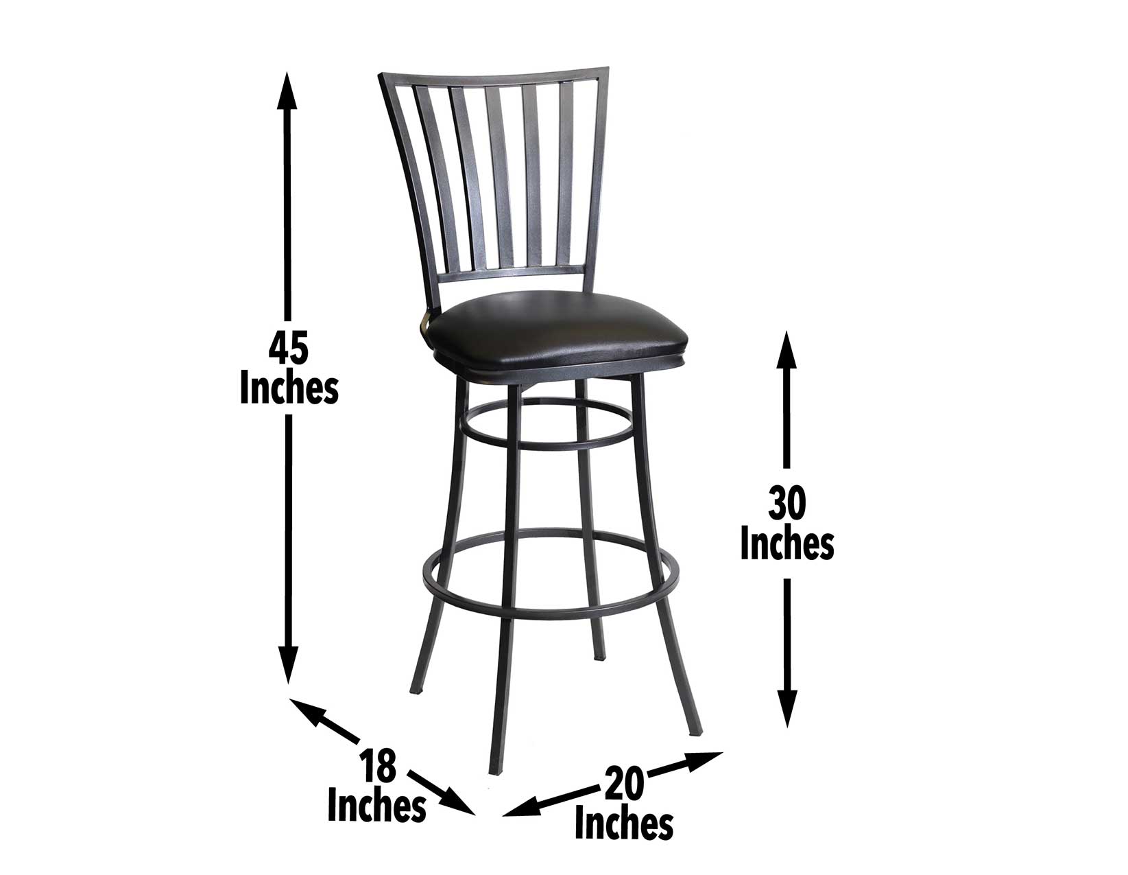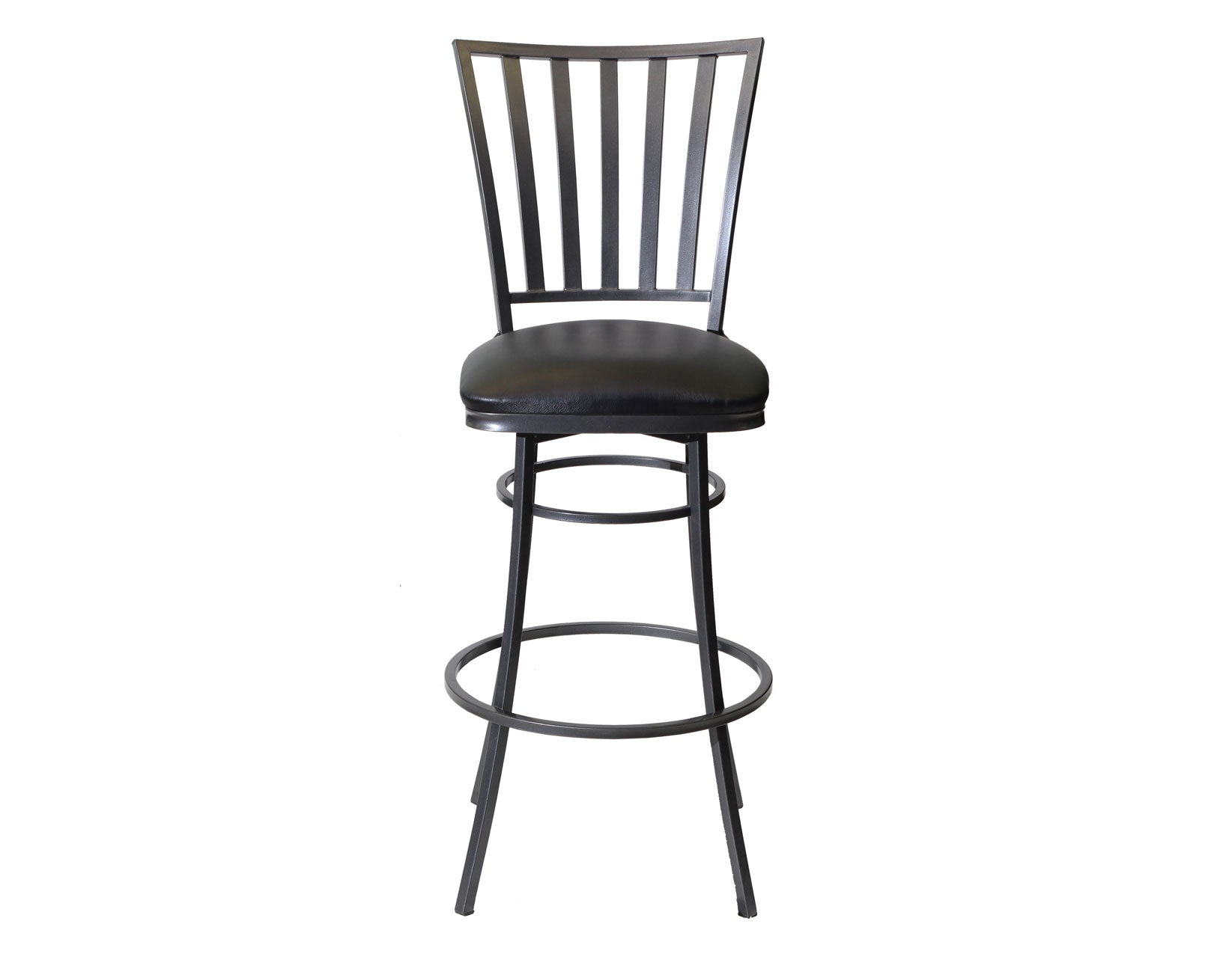 Comfort, style and durability in a Commercial Grade strength Bar Stool, Stellan adds some mixed media style to any counter area. A sleek powder-coated gunmetal finish mixes beautifully with the midnight leatherette seat that looks great and is comfortable. The full 360 degree swivel seat makes entrance and exit easy as well as enjoyable. This 30″ seat high chair works with any 42″ counter including Bar counters.