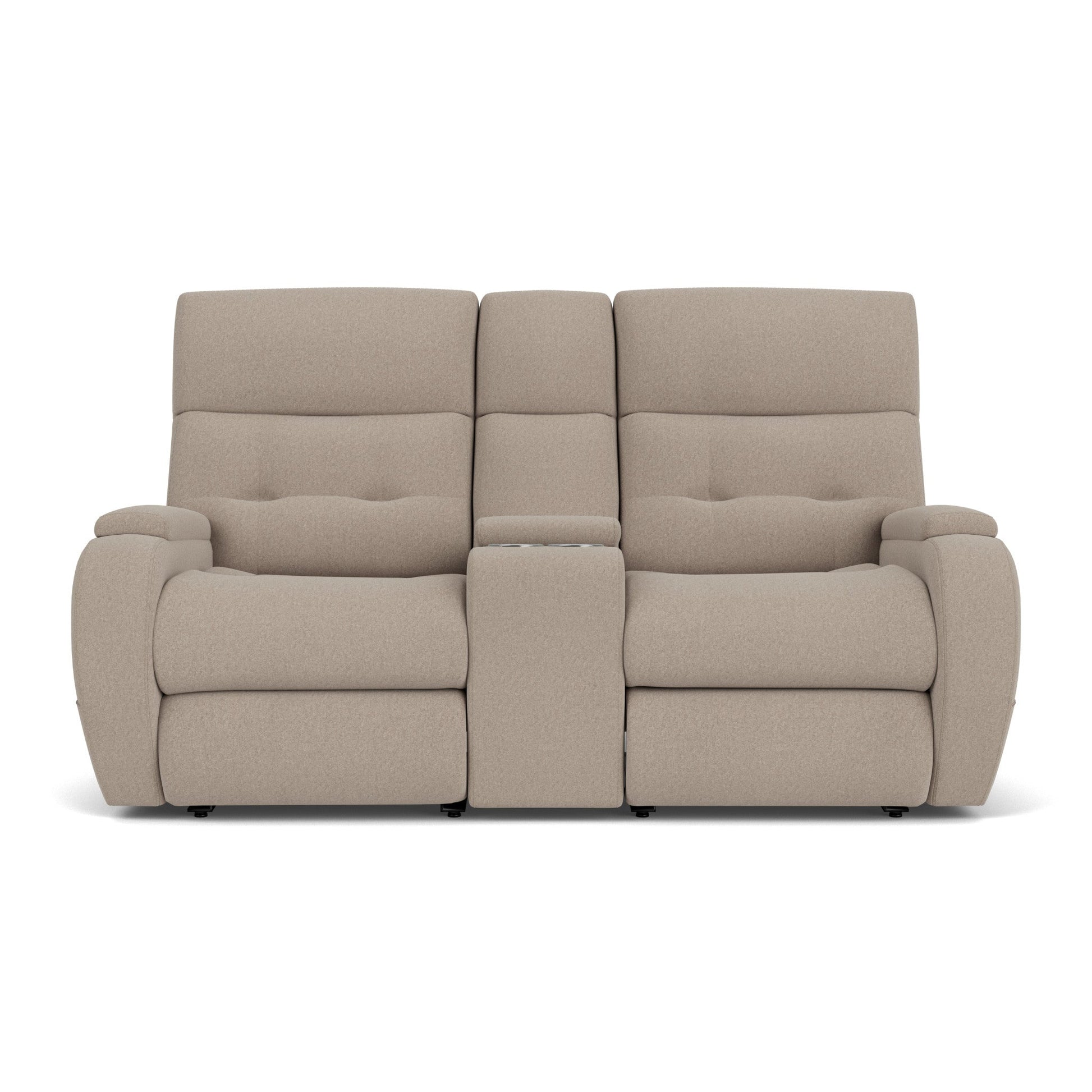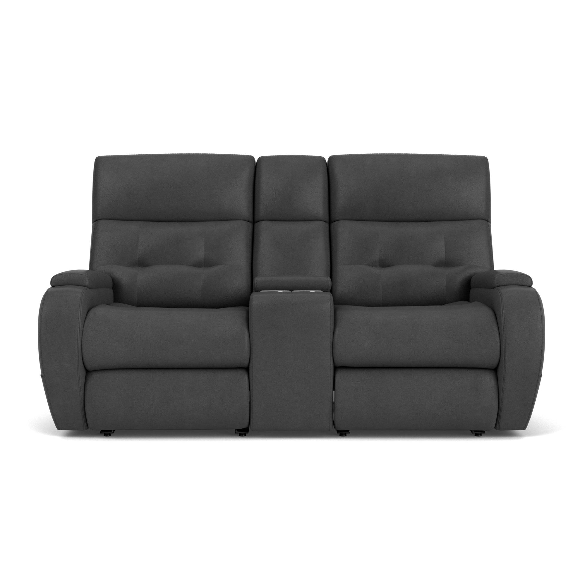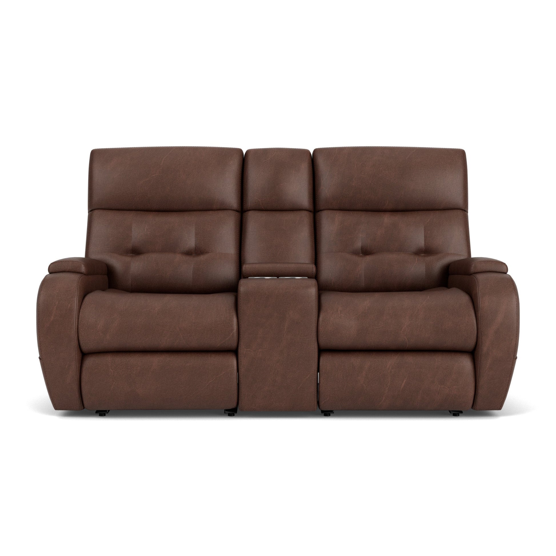 Strait Leather Power Reclining Loveseat with Console & Power Headrests