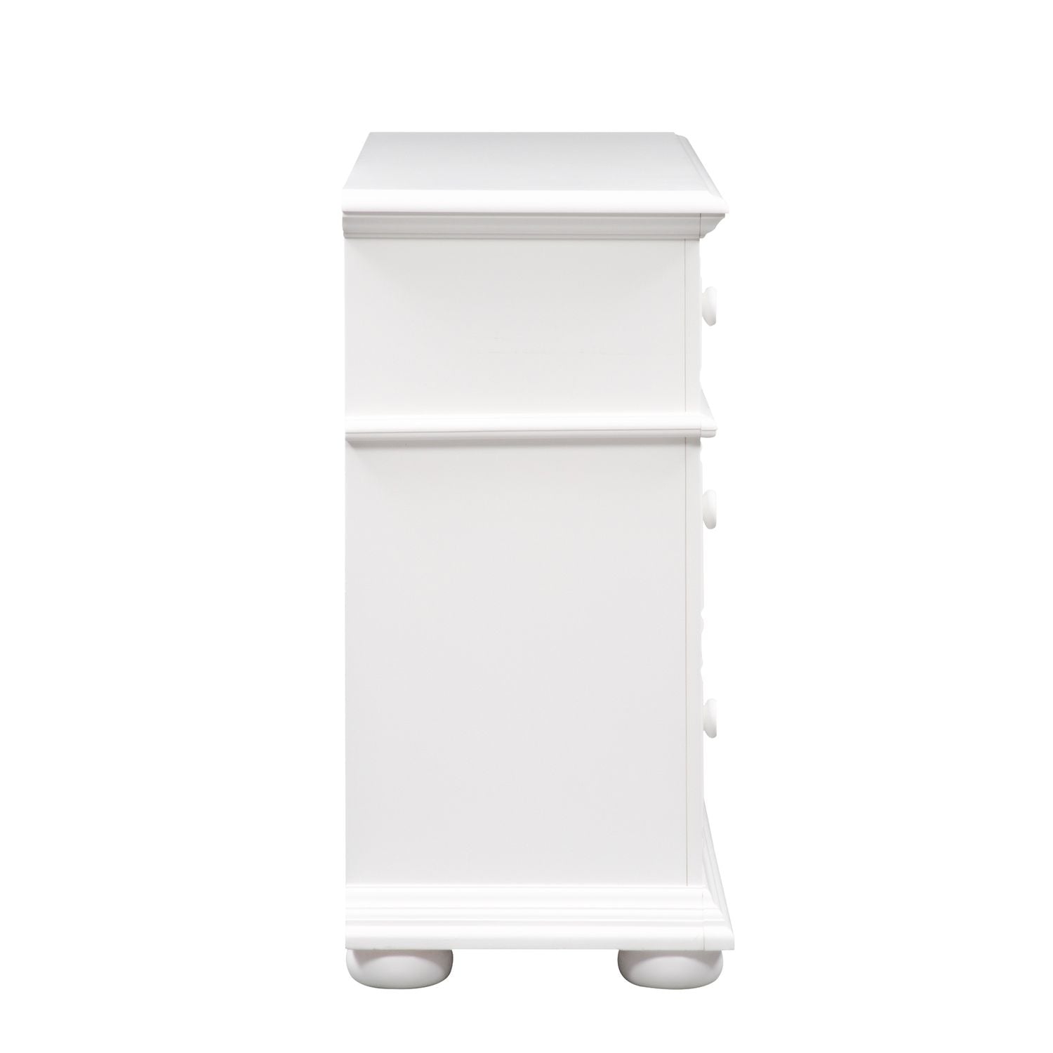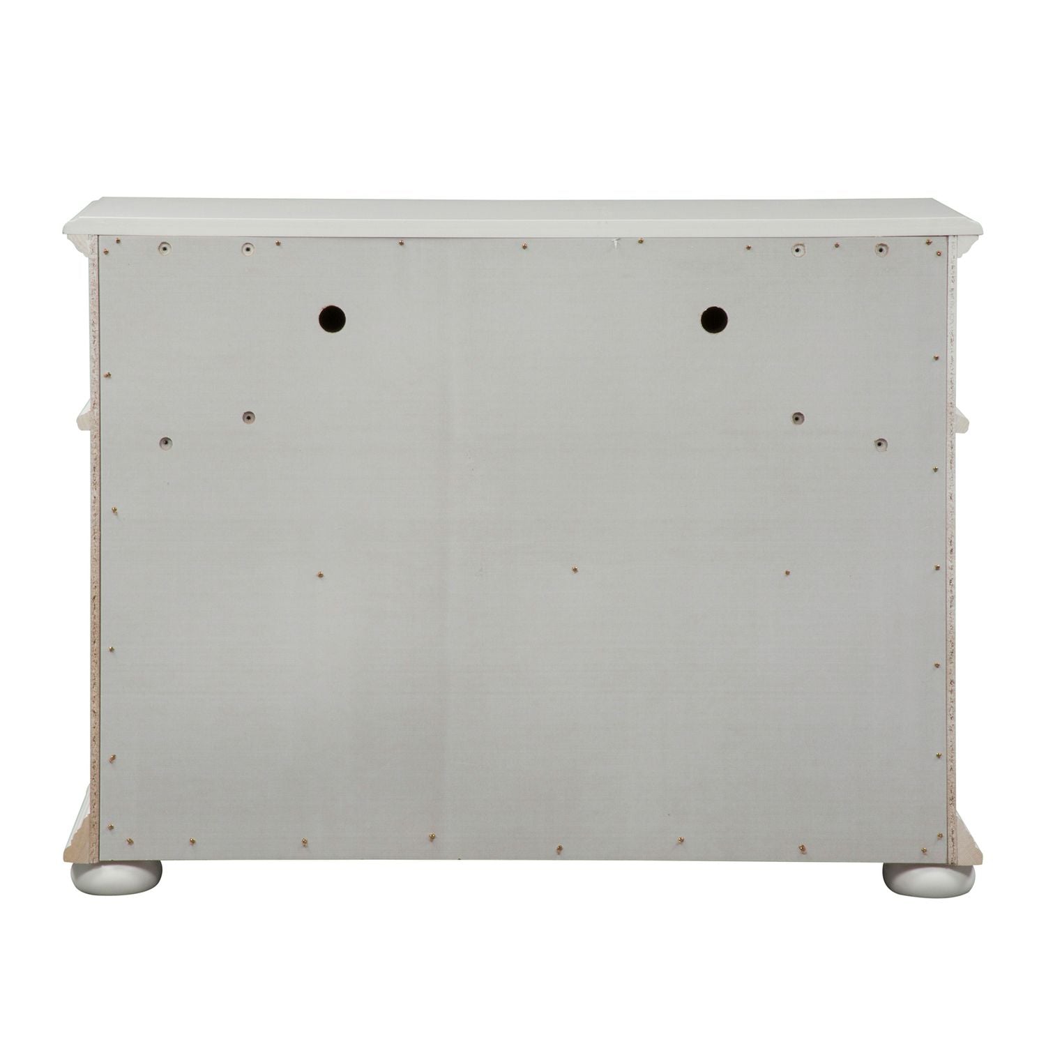 Obtain a fashionable cottage look with the Summer House 6 drawer dresser. Crafted of pine solids with painted MDF, this piece features bottom case dust proofing, full extension drawer glides for easy access to storage, fully stained interior drawers, felt lined top drawers, and is accented by wooden knob hardware.