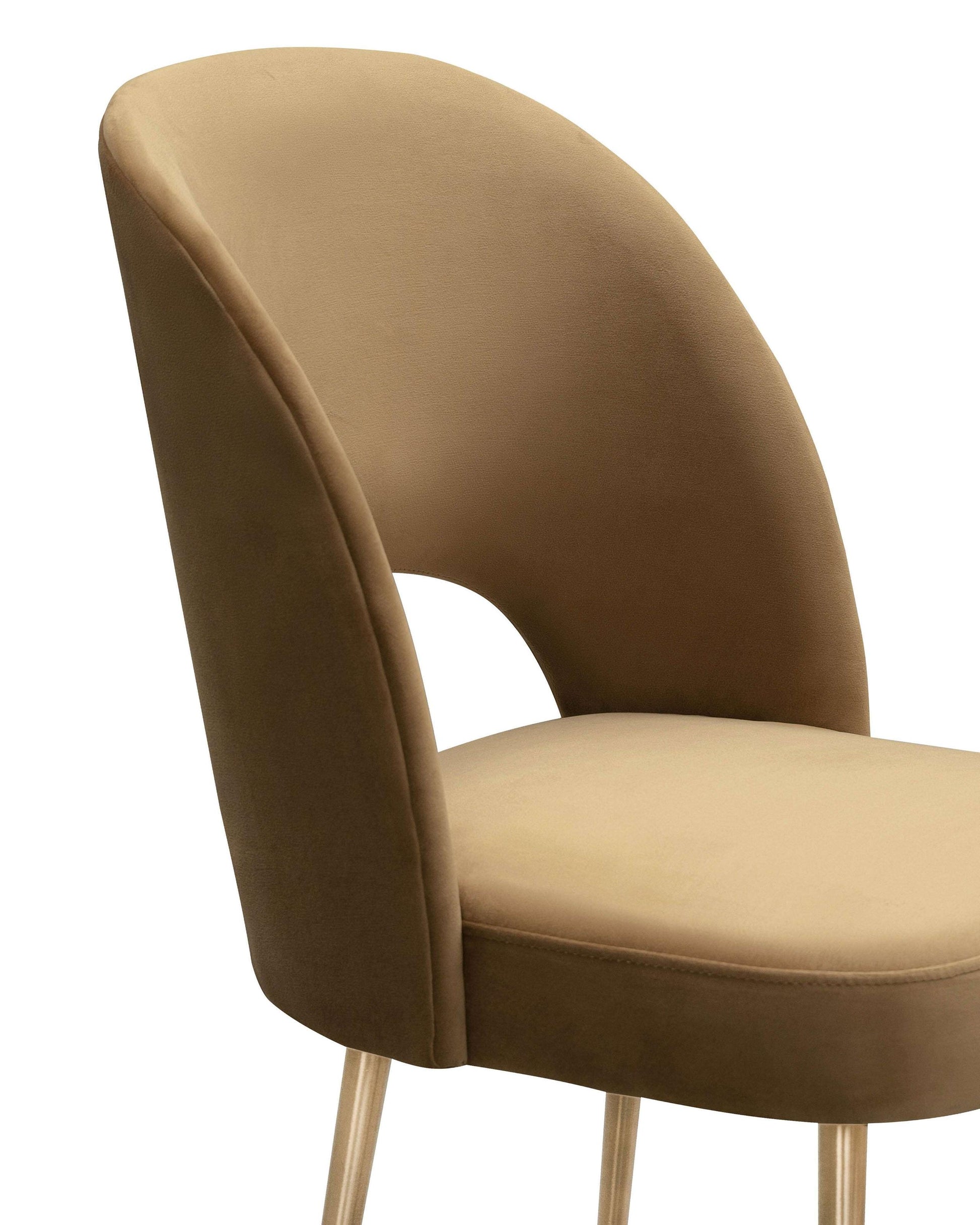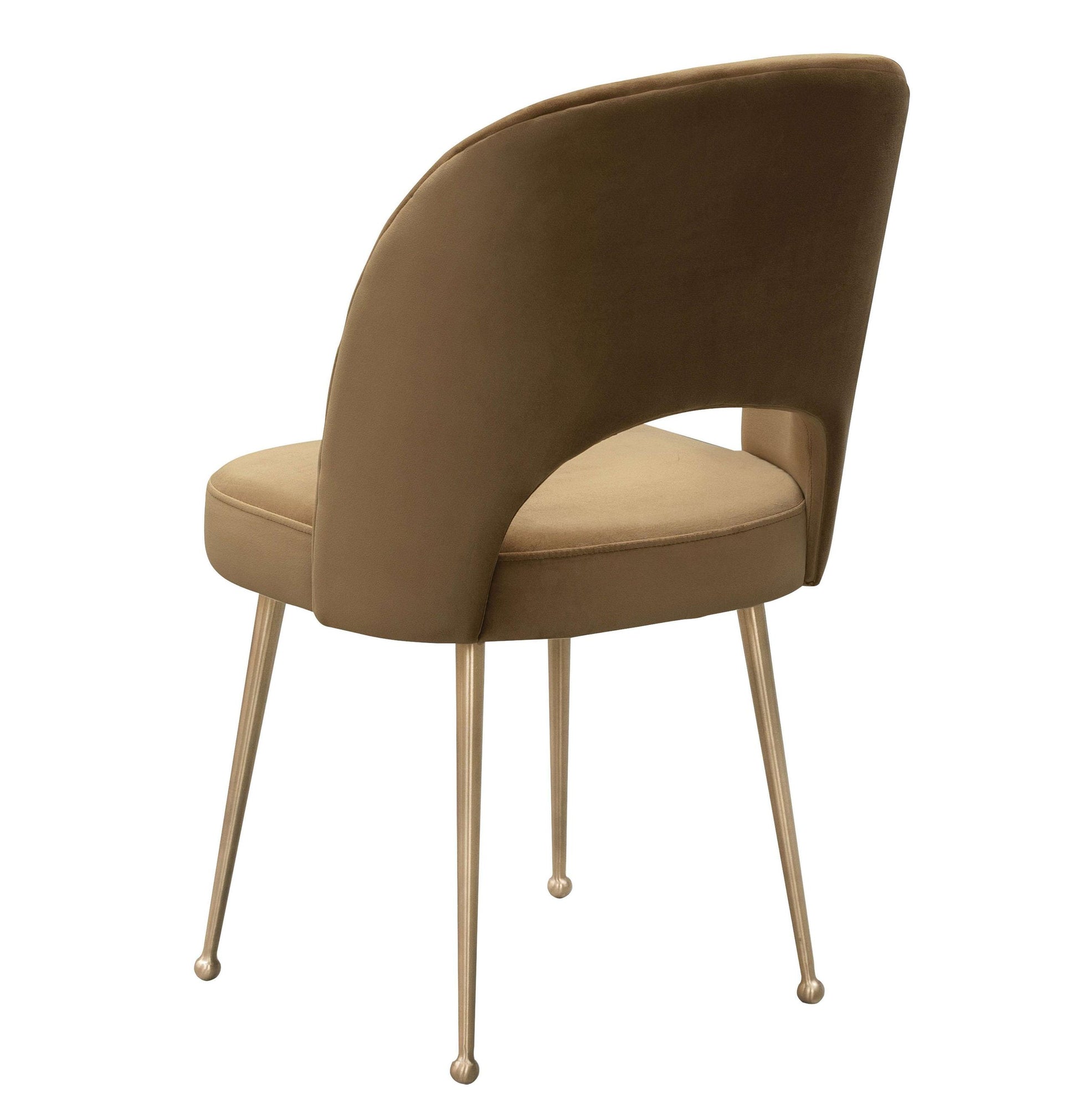 The Swell dining chair offers the perfect blend of Mid Century Modern and Hollywood Glam. With sumptuous velvet upholstery and gold antenna shaped steel legs this chair is a definite winner and is versatile to match any decor. Available in several color options it pairs exceptionally well with one of our complementing dining tables.