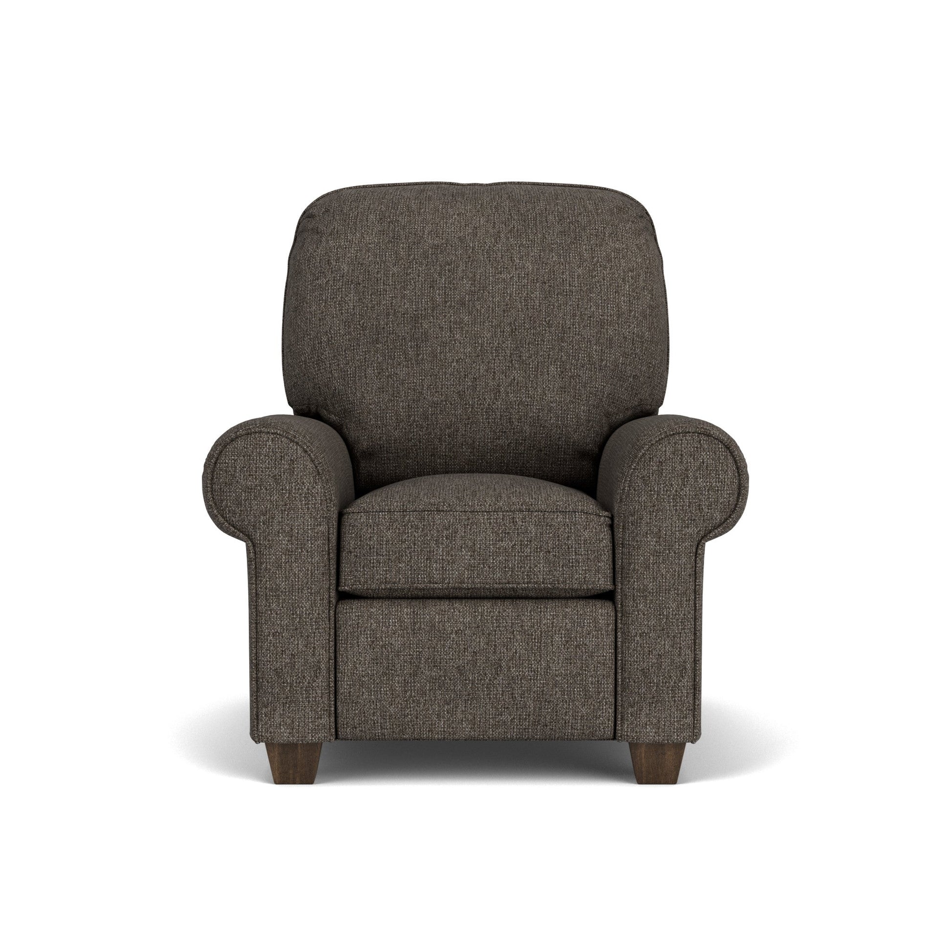 Simple, Classic Tailoring in a Timeless Style Showcase your home with the timeless charm of the Thornton high-leg recliner. Smoothly rolled edges and arms, tapered block legs, and a welt-corded trim make it the quintessential living area piece. Offered in your choice of fabric, this recliner provides the style and comfort that has made it one of our long-time best sellers. Transitional style with rolled arms and a welt-corded trim detail Smoothly recline back for added comfort and relaxation Upholstered in your choice of fabric, including those with performance and sustainability characteristics The patented Blue Steel Spring™ seat system provides unmatched support and lasting comfort Sustainably-sourced, kiln-dried wood frame with mortise and tenon joinery for lasting strength and durability High resiliency seat cushion is engineered to maintain its shape over time Fiber-filled, semi-attached back cushion is designed to stay in place for a tidy appearance Square tapered legs are available in three finish options Handcrafted in North America Model Number: 5535-503 Dimensions 41H x 38W x 39L
