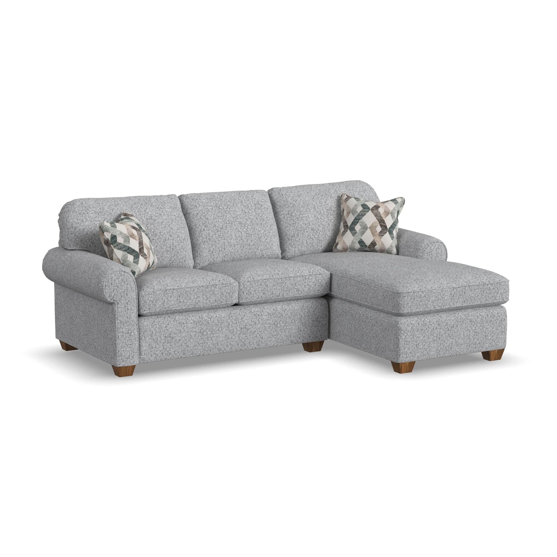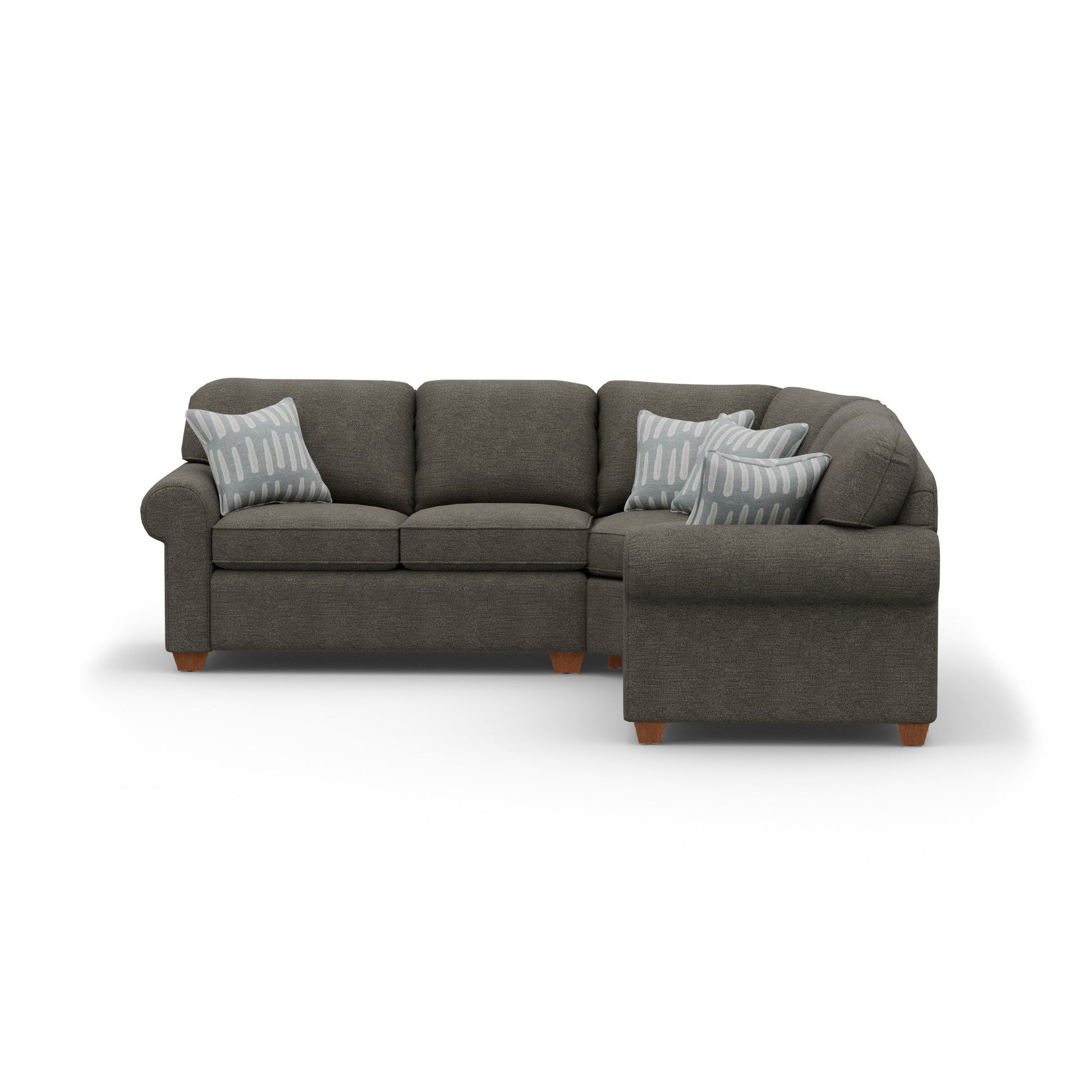 Simple, Classic Tailoring in a Timeless Style Showcase your home with the timeless charm of the Thornton sectional. Smoothly rolled edges and arms, tapered block legs, and a welt-corded trim make it the quintessential living area piece. Offered in a wide range of components and a choice of fabric, this sectional provides the style, comfort and creativity for any home – making it one of our long-time best sellers. Sixteen sectional components available to create a custom configuration that fits your space, big or small Transitional style with rolled arms and a welt-corded trim detail Smoothly recline back for added comfort and relaxation Upholstered in your choice of fabric, including those with performance and sustainability characteristics The patented Blue Steel Spring™ seat system provides unmatched support and lasting comfort Sustainably-sourced, kiln-dried wood frame with mortise and tenon joinery for lasting strength and durability High resiliency seat cushion is engineered to maintain its shape over time Fiber-filled, semi-attached back cushion is designed to stay in place for a tidy appearance Square tapered legs are available in three finish options Handcrafted in North America Model Number: 5535-SECT Dimensions