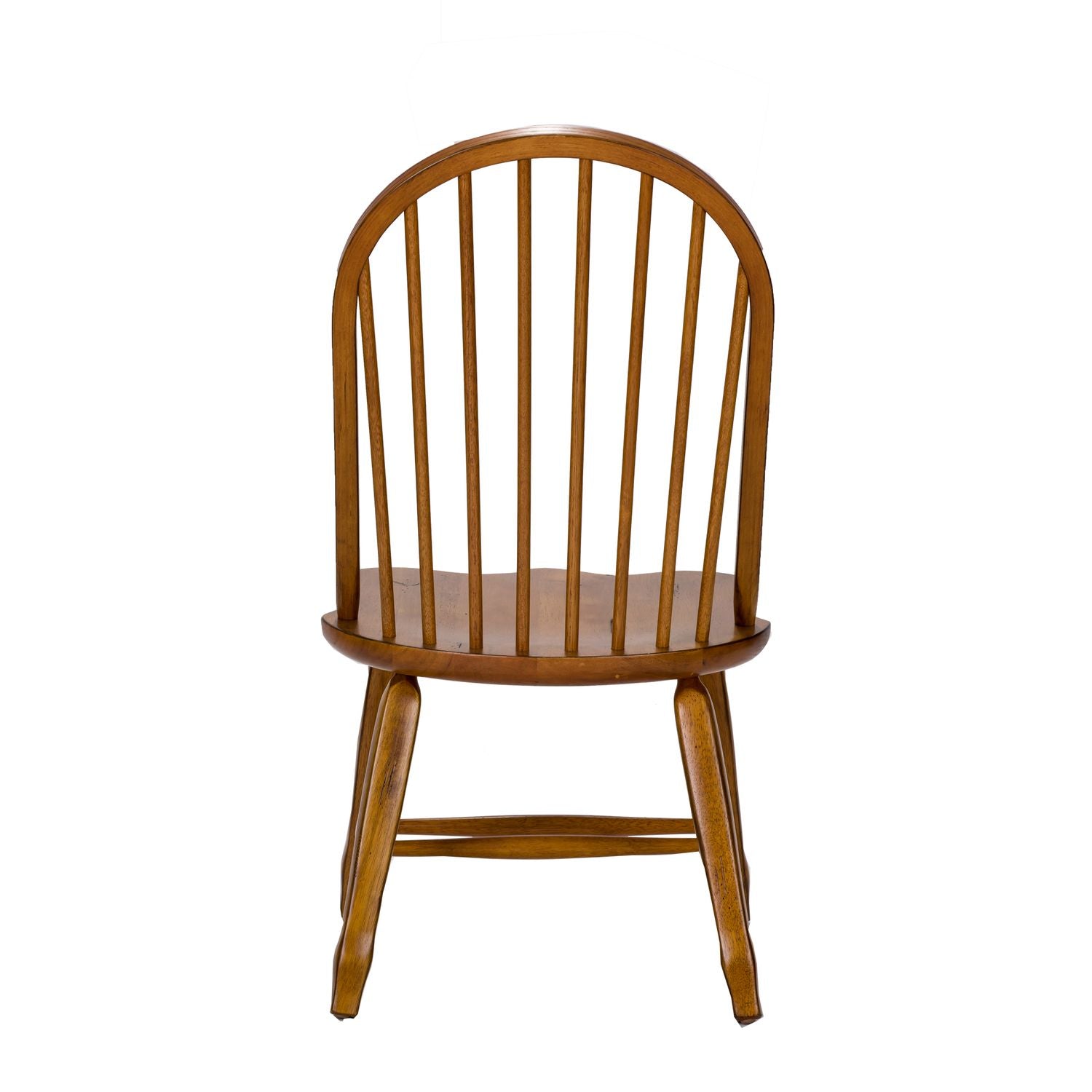 Design possibilities are endless with the Treasures five-piece set. Crafted of rubberwood solids and ash veneers, this set features a rustic oak finish and includes a rectangular leg table and four bow back side chairs. The leg table has a planked top and features two 18” removable leaves to accommodate guests or a larger family. The chairs have saddle shaped seats for added comfort and an H shaped stretcher for extra support as well as nylon chair glides to protect your flooring. Treasures offers simple shaker styled dining in a subtle finish which evokes the feel of a treasured antique.