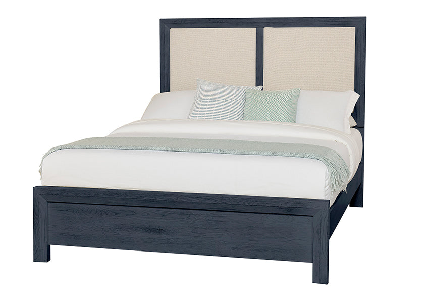 Custom Express Upholstered Bed features an upholstered headboard with solid American oak trim covered in a Performance linen-look fabric. Easily cleanable; stain resistant; and durable to withstand the wear and tear of everyday life.
