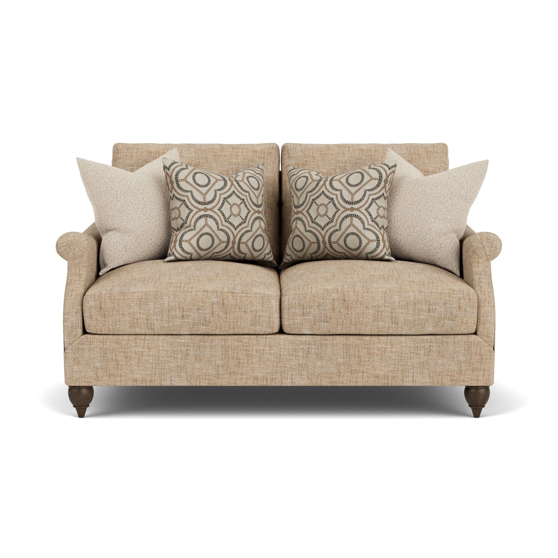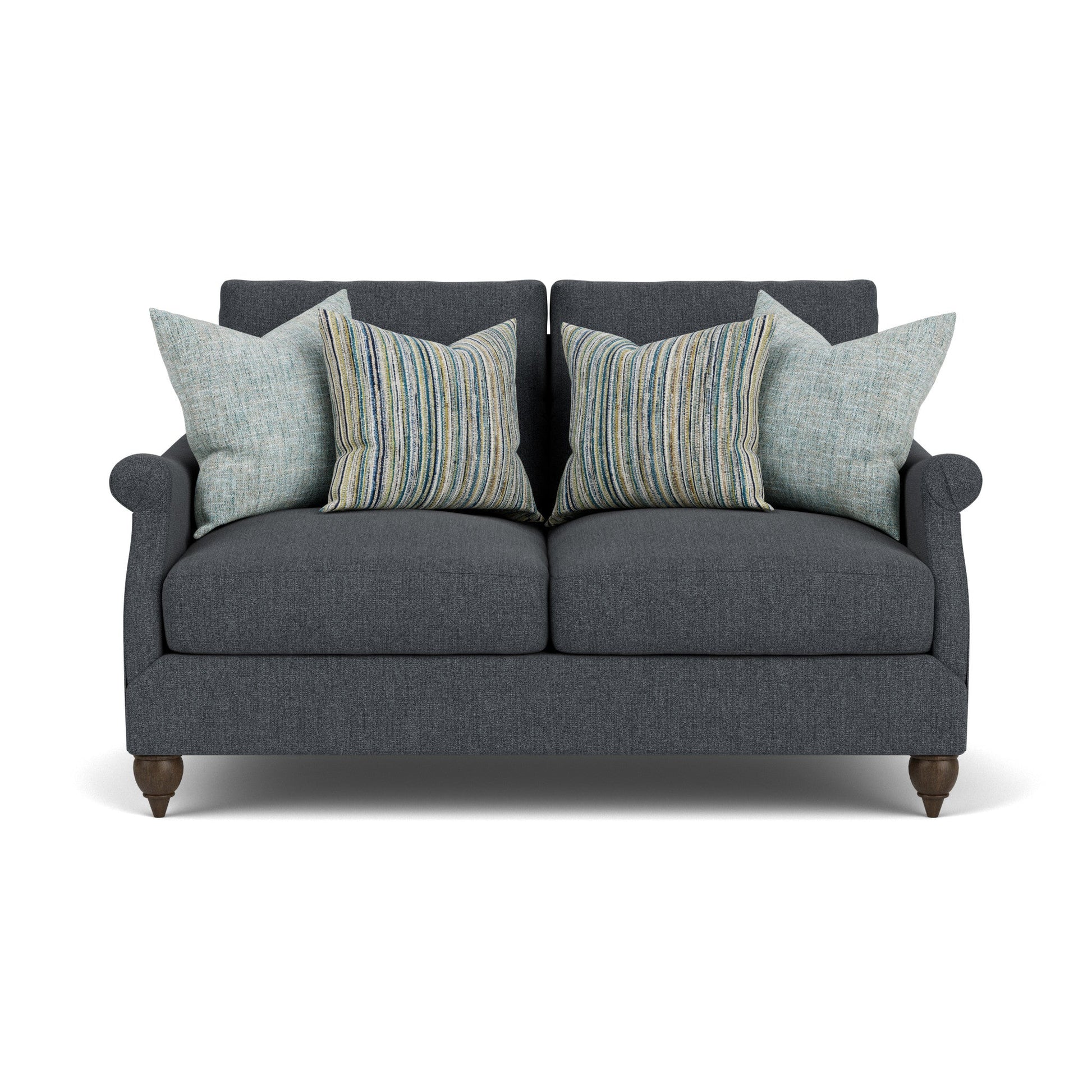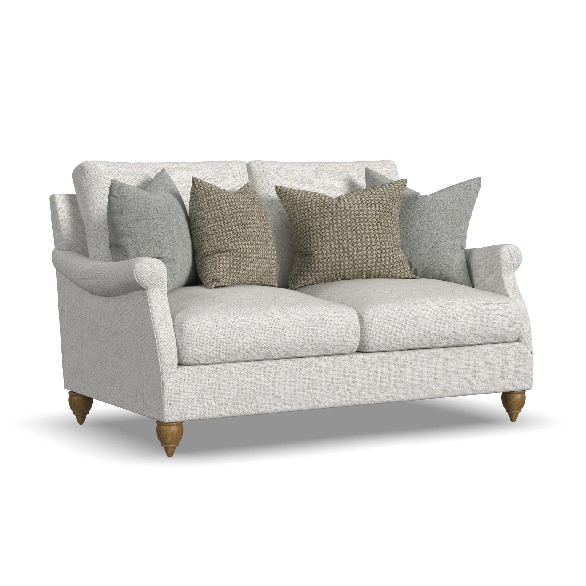 A Fresh Take on Timeless Style Traditional elegance gets a fresh reinterpretation with the Veda loveseat. The petite, pleated roll arms slope down onto stately legs, delivering timeless details and graceful curves that soften the room while adding an abundance of charm. Generous seat space, cushion fill choices, and the Blue Steel Spring at the heart of each seat ensure lasting comfort. And bring your room together with four accent pillows, orderable in your choice of fabric. Pleated, petite roll arms with soft curves for an elegant touch Choose from a round turned or square tapered leg, available in three finish options Includes four accent pillows in your choice of fabric to match your personal style The patented Blue Steel Spring in the seat provides unmatched support and lasting comfort Constructed with a premium, durable 5-layer wood frame The removable and reversible seat and back cushions allow you to flip and rotate them for even wear The seat cushions have a high resiliency foam core that is engineered to maintain its shape over time and contain a layer of recovery foam and a soft fiber top for luxurious comfort. An upgrade to Featherblend fill is available Upholstered in your choice of fabric, including those with performance and sustainability characteristics Handcrafted in North America Model Number: 7171-20 Dimensions 36H x 60W x 37L