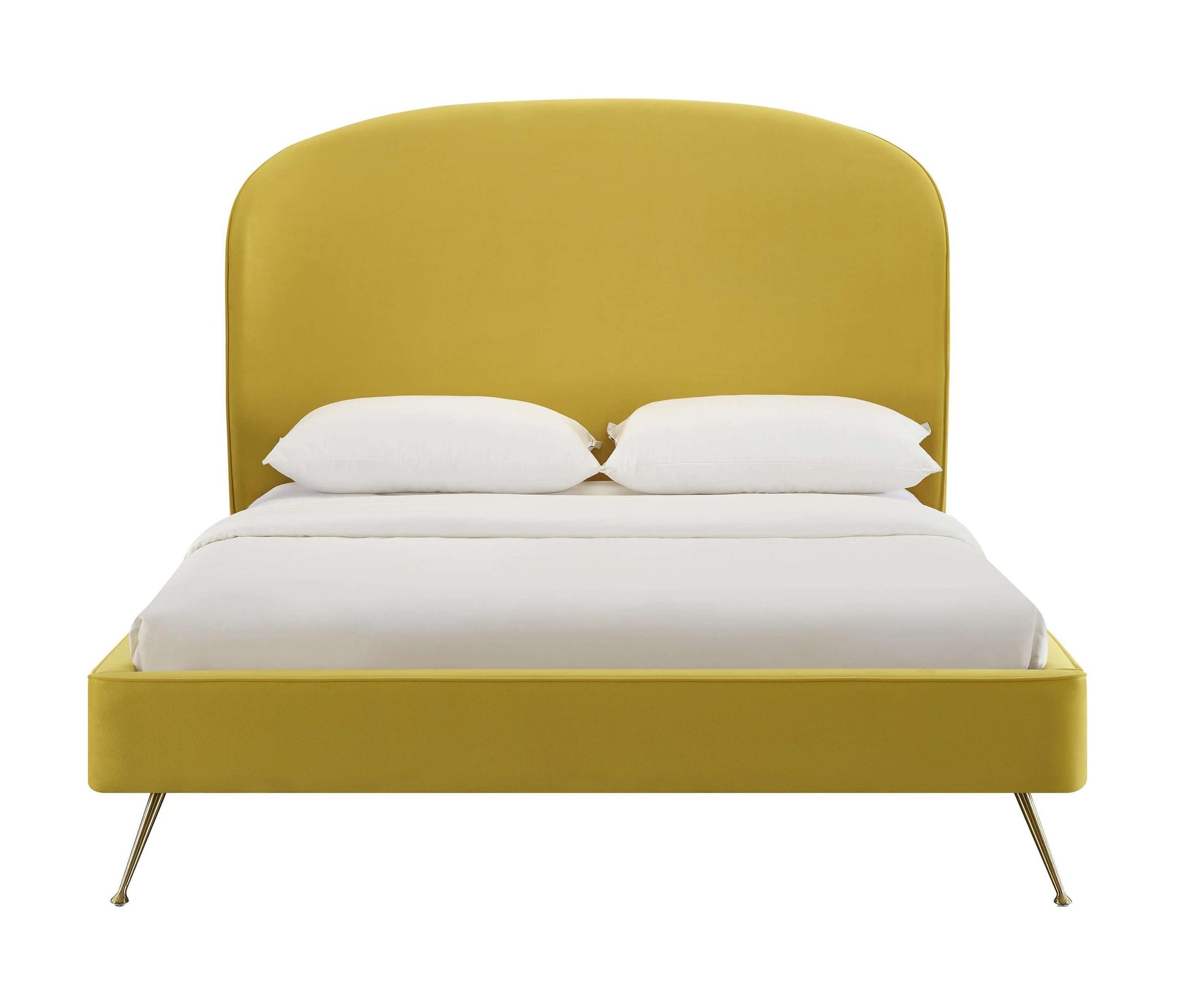 Modern glam is beautifully epitomized in the elegant curves of the Vivi bed. Boasting a dramatic silhouette and gold glamorous legs that pop against the textured velvet upholstery, it demands attention. Available in Twin, Queen and King sizes and multiple color options.