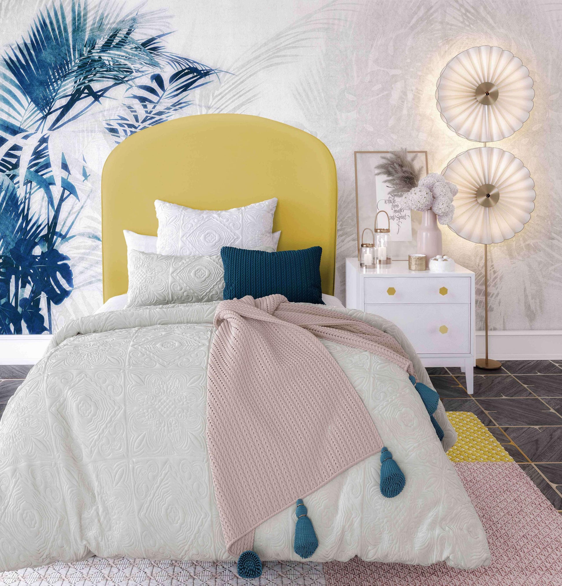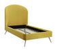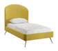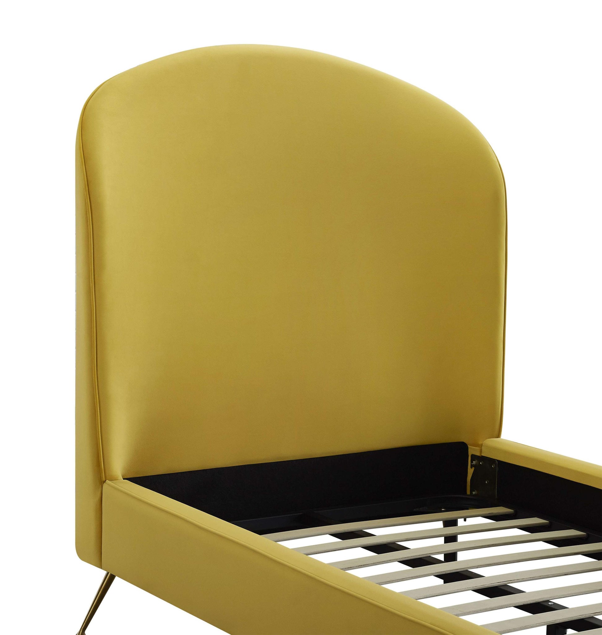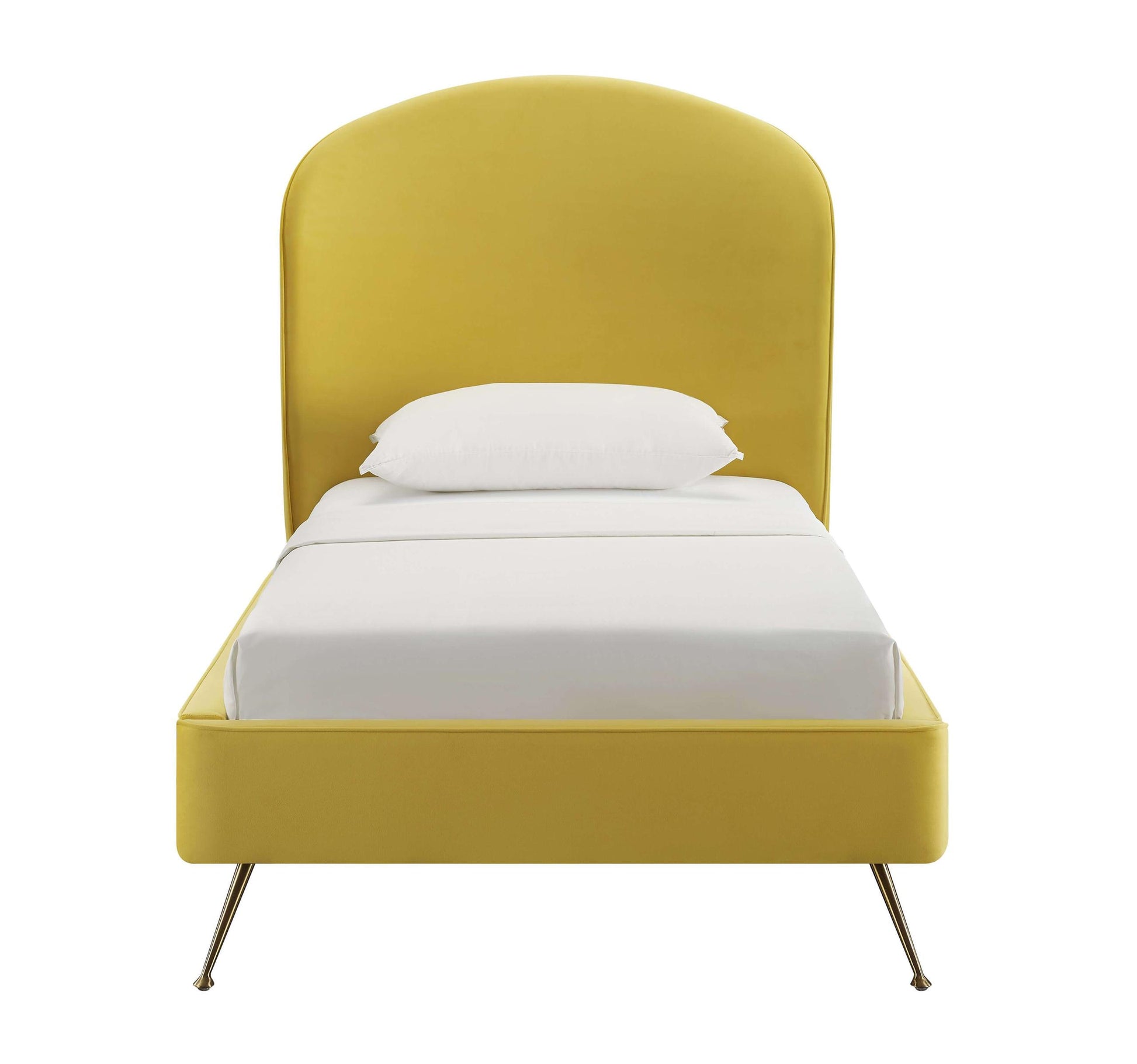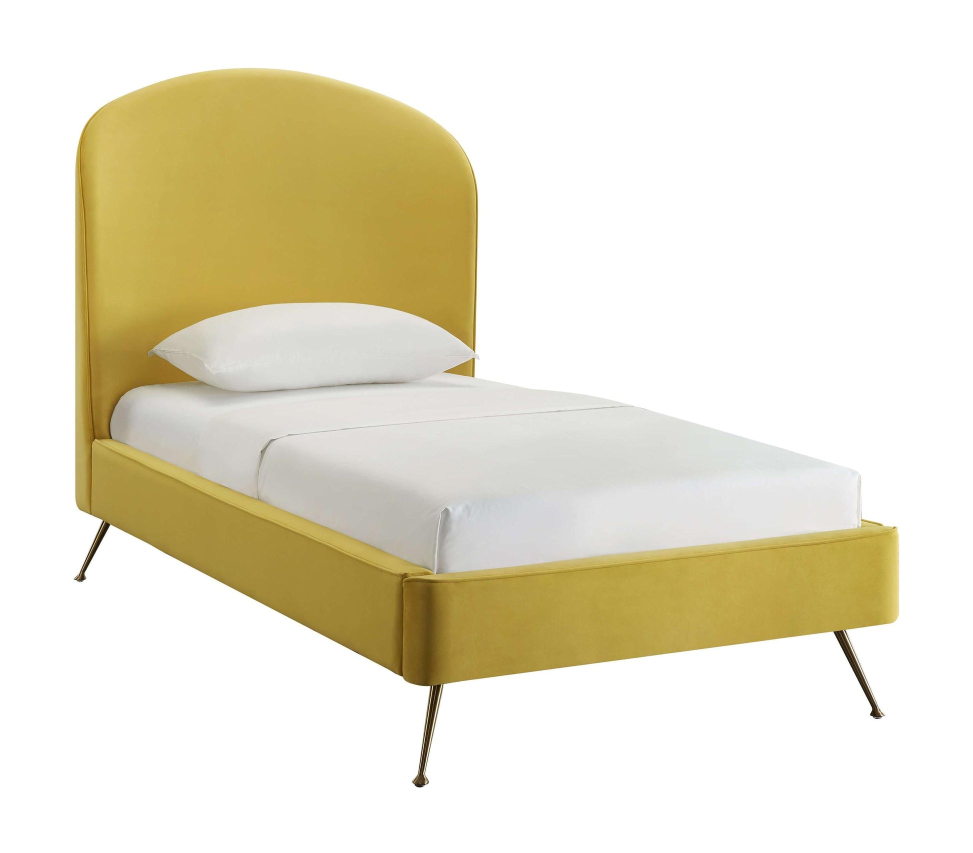 Modern glam is beautifully epitomized in the elegant curves of the Vivi bed. Boasting a dramatic silhouette and gold glamorous legs that pop against the textured velvet upholstery, it demands attention. Available in Twin, Queen and King sizes and multiple color options.