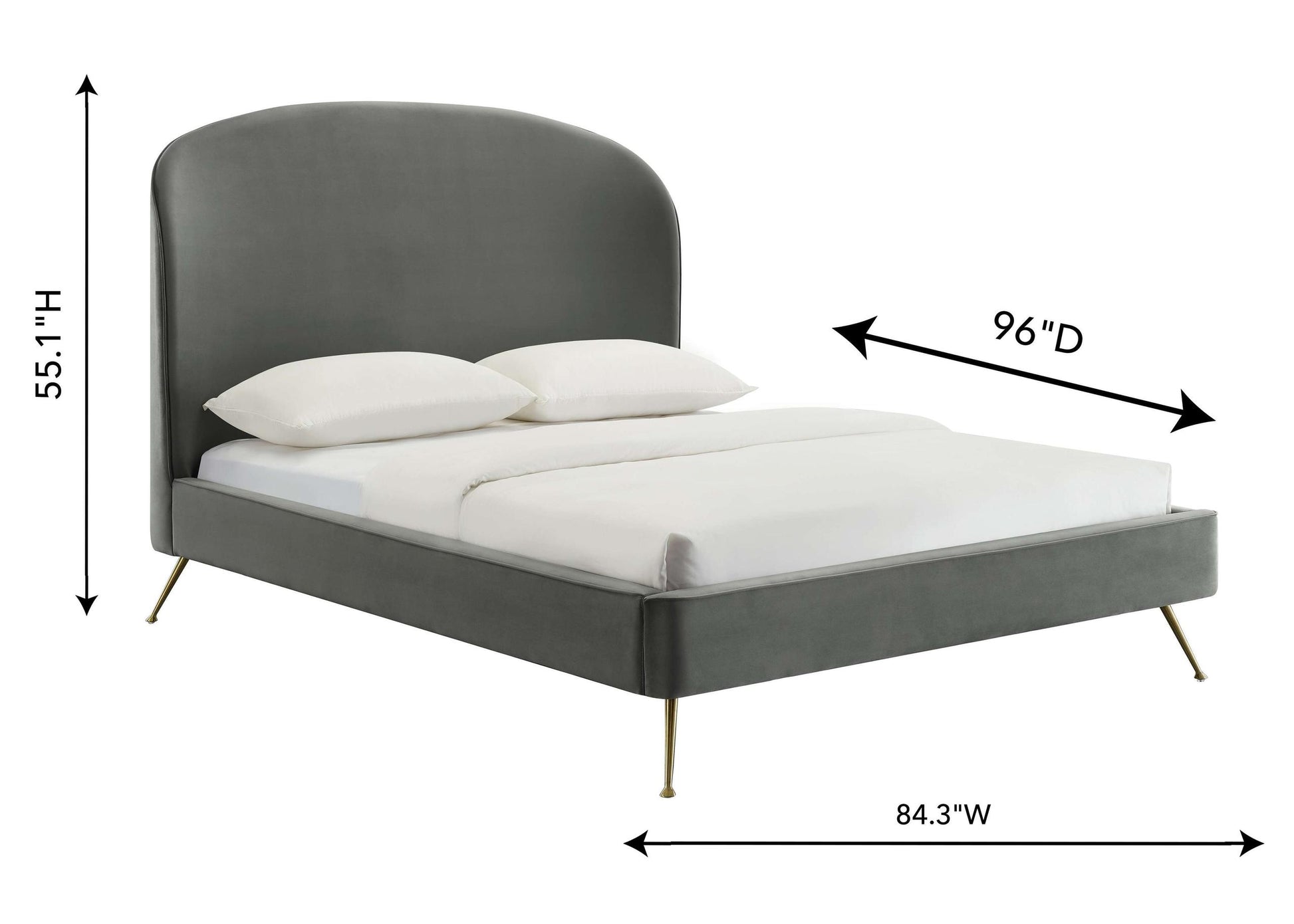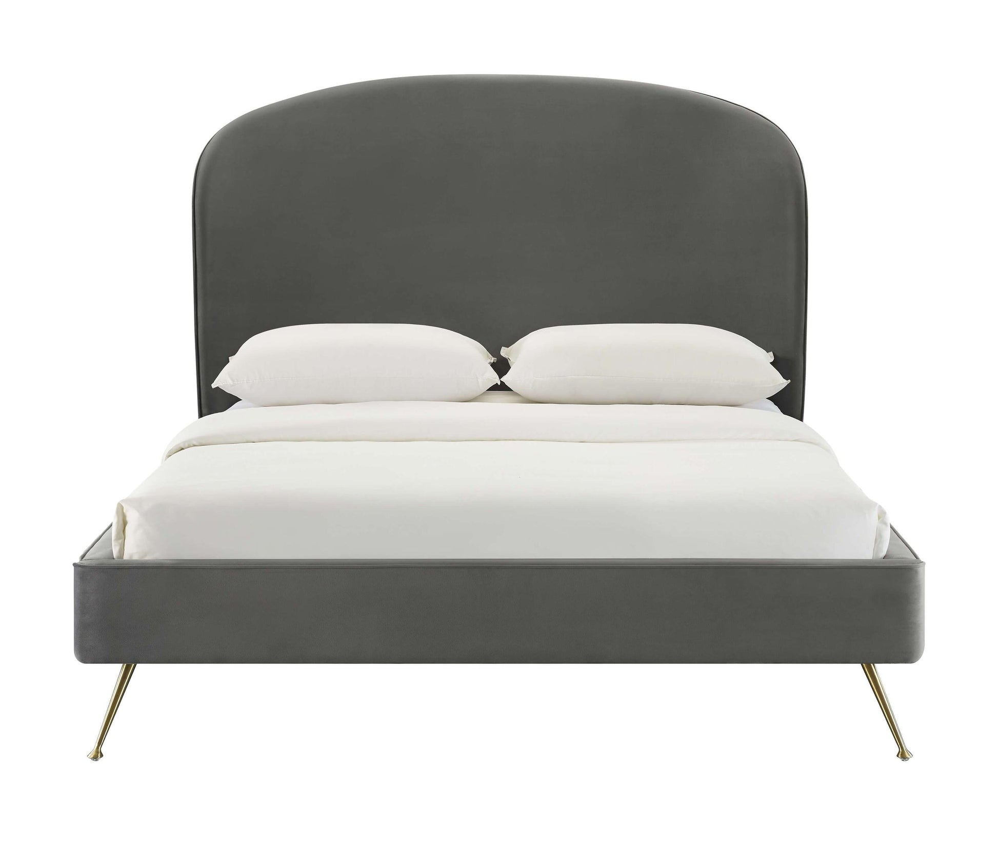 Modern glam is beautifully epitomized in the elegant curves of the Vivi bed. Boasting a dramatic silhouette and gold glamorous legs that pop against the textured velvet upholstery, it demands attention. Available in Twin, Queen and King sizes and multiple color options.