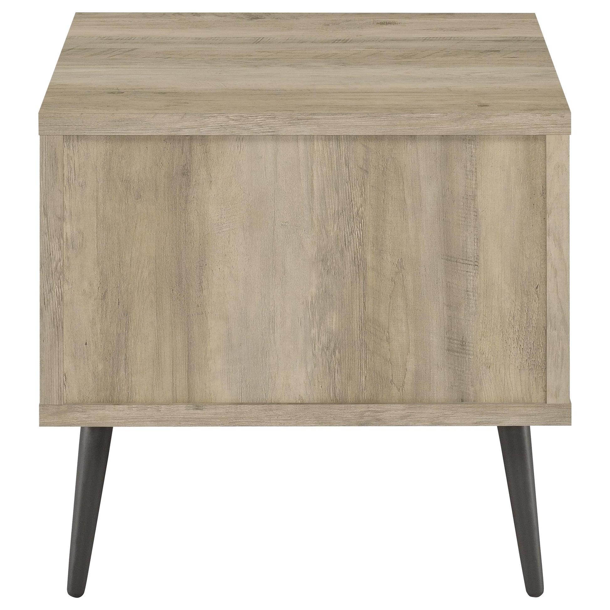 • Coffee table set includes a cocktail table and end table with a retro design influence