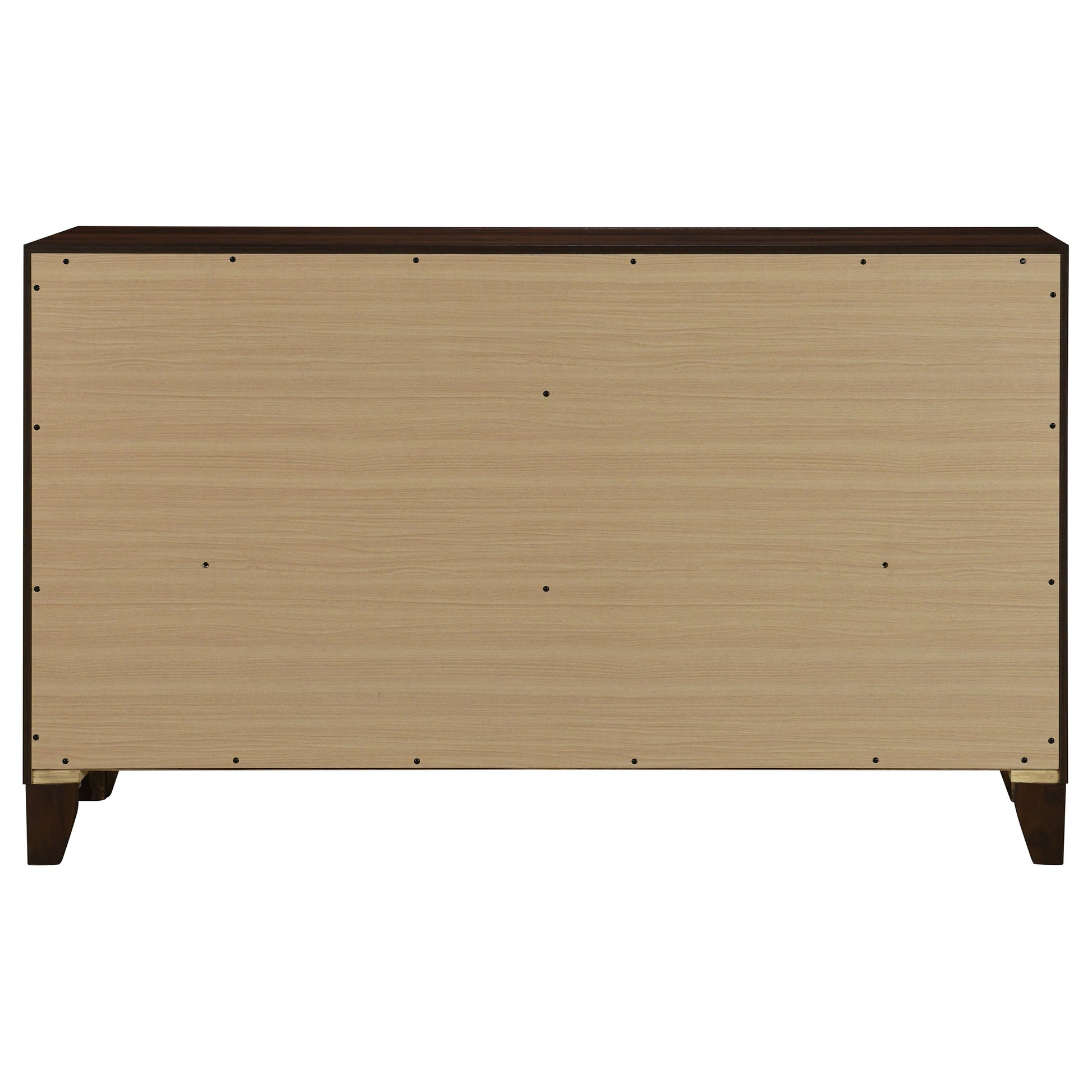 • Straightforward style and clean lines highlight a modern six-drawer dresser with a wide top
