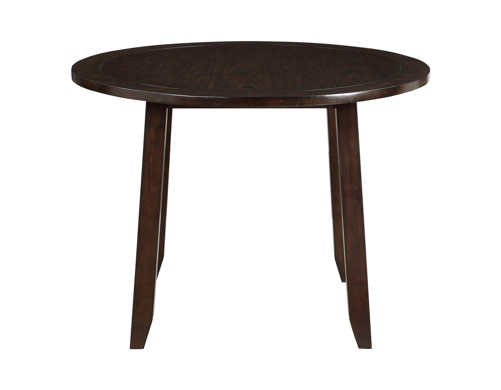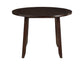 Yorktown adds style to small area dining with this 5-Pack dinette set. Transitionally styled with mid-century modern influences, Yorktown features a lustrous espresso finish over mindi veneers in a 42-inch round table that is both cozy and functional. Solid wood chairs are upholstered in a modern gray tweed for a comfortable seat and feature vertical slat backs and tapered legs that complement the canted tapered legs of the table.