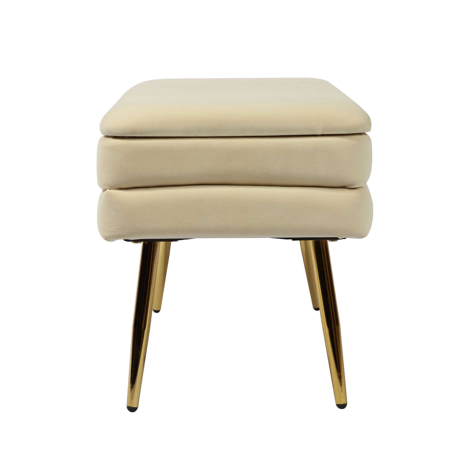 Add a touch of sophistication with the functional and ultra chic Ziva bench. Featuring channel tufting, plush velvet upholstery, polished gold legs and ample storage space to keep your room looking neat and stylish. Available in several exciting color options.